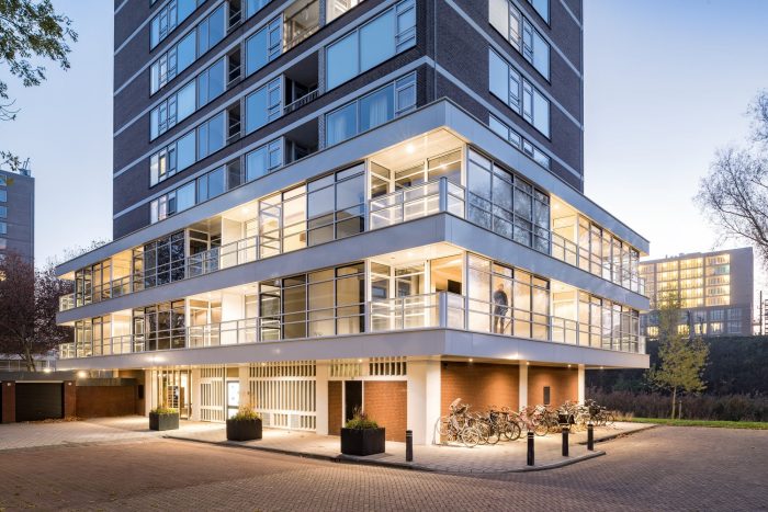 With the conversion into high-end urban lofts Bureau Fraai & BNLA architecten made the design for the upgrade of former office spaces underneath two of in total four characteristic 60’s mixed-use residential blocks of Dutch functionalist Piet Zanstra.