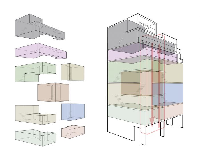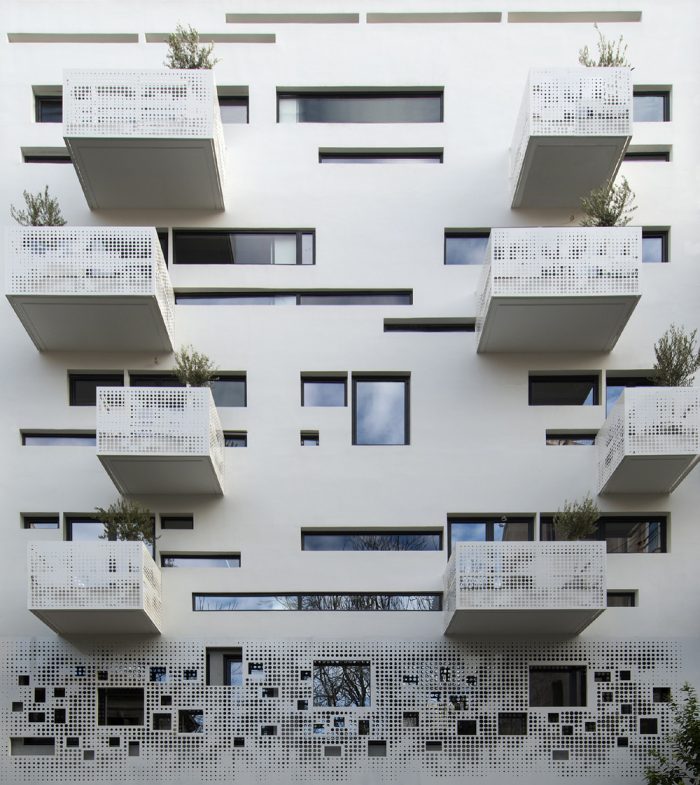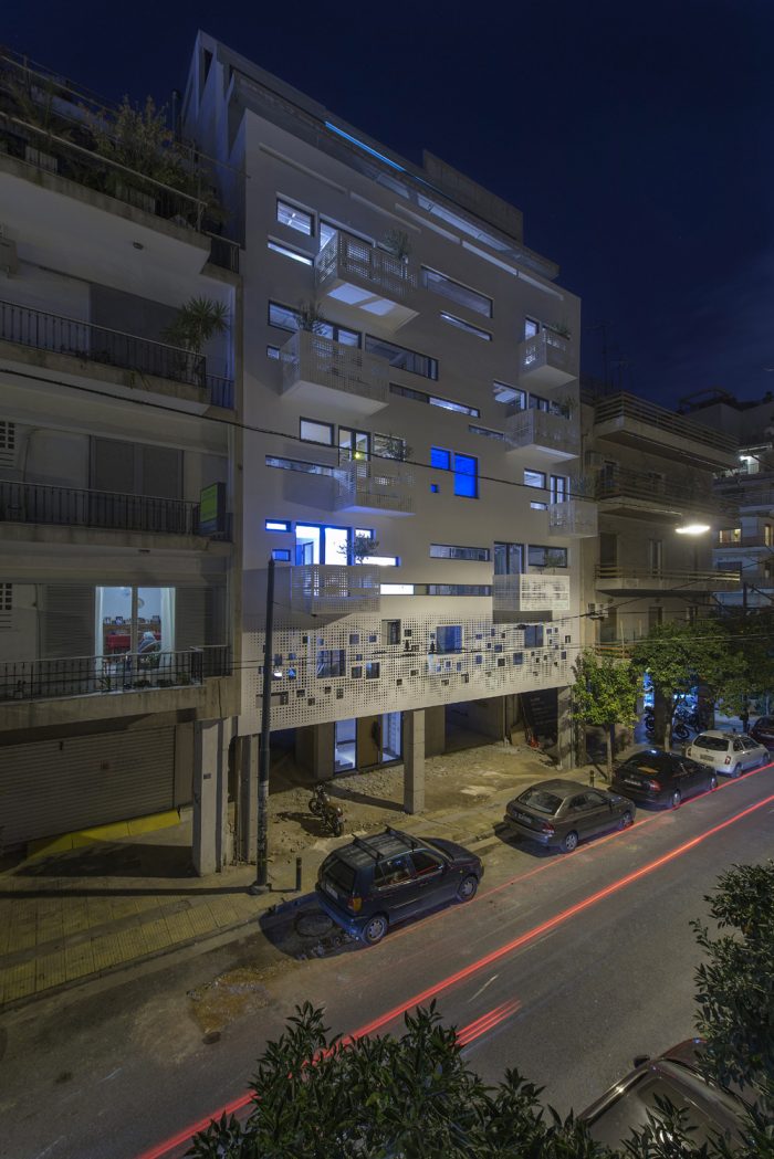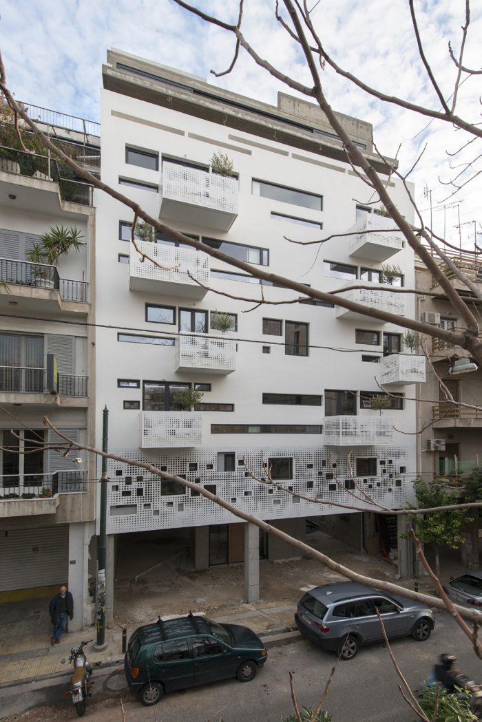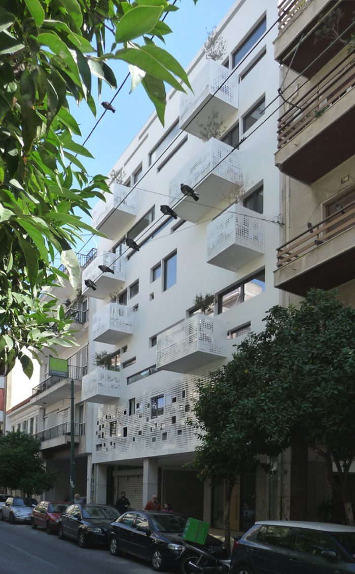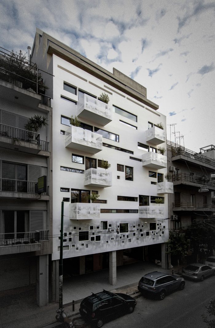 Apartments are defined through their size, position, plan, section and their view to Acropolis. Urban fabric is being filtered and privacy is important as the dense urban environment is dominant in the area. Using linearity that creates a direct relation to Zenetos building and the balconies of the adjacent building façade is designed through linear openings on different heights that show or hide different pieces of the urban scenery. Juxtaposed to the linearity the cantilevered balconies act as volumes.