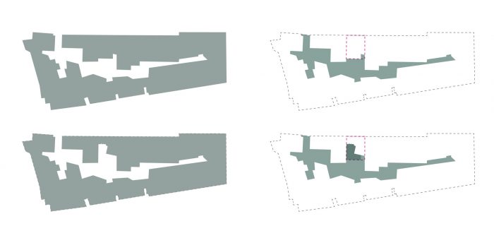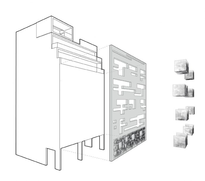 Reinterpreting elements of this typology and from the two important buildings of the area “Urban stripes” create a new urban façade responding to the urban and social conditions of current times.