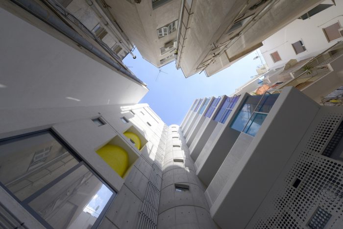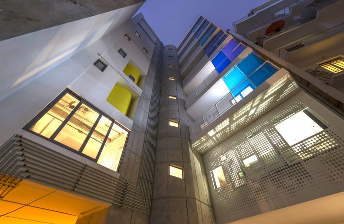 “Urban stripes” is an apartment building or a “polykatoikia” as it is commonly known in Greece this type of building. It is located at Koukaki a neighborhood in the centre of Athens very close to the new museum of Acropolis by Bernard Tschumi and the old beer factory “Fix” by Zenetos an influential Greek architect of the last century. The neighborhood is mostly residential, built during the 60’s and 70’s with the typology of the “polykatoikia”
