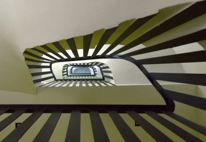 Inside, the common spaces are being treated using again elements of the past as mosaic flooring and marble bordures but also it is playful using a palette of colors that differentiate each floor.