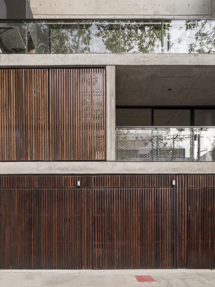 Regarding the façade, three essential materials are used for its design: concrete, wood and glass.