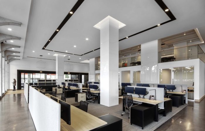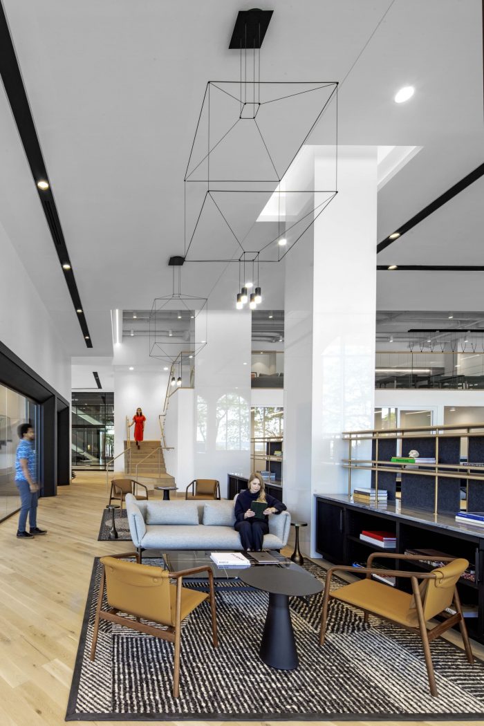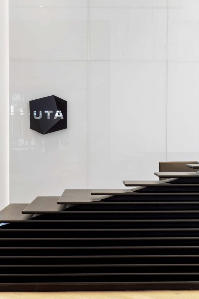 UTA’s new 15,000 square-foot, multi-level space includes 22 private offices, 36 workstations, meeting rooms, phone rooms, a wellness room, rooftop deck, mezzanine café, and various lounges. Envisioned as a “gallery of talent,” the white box space is specifically designed to showcase the range of artists, creatives, and entertainers UTA represents. The design introduces accents of darker tones, textures, and materials that infuse the environment with subtle touches of edge and soul.