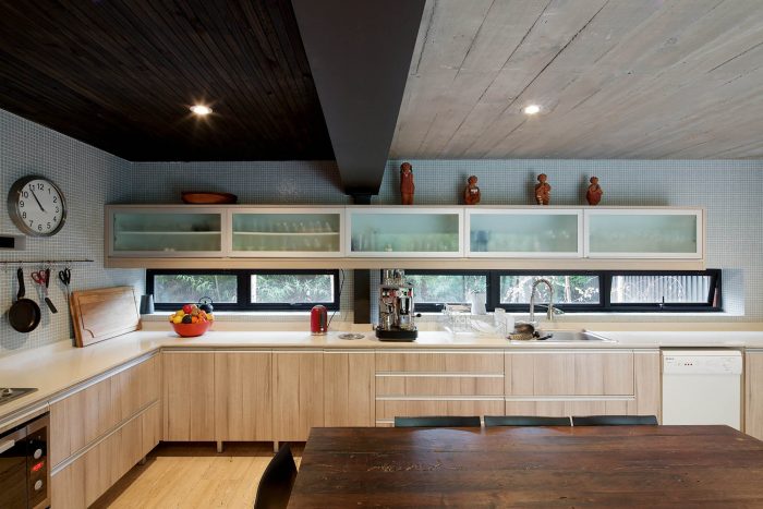 Originally the house consisted in a two levels building, with inclinated roofs, that included public spaces and services on the ground floor and bedrooms in the first floor. The renovation consisted in remove all the original roofs, demolish non structurals walls of the ground floor, extend this and reconfigurate and redo newly the same program in a bigger surface.