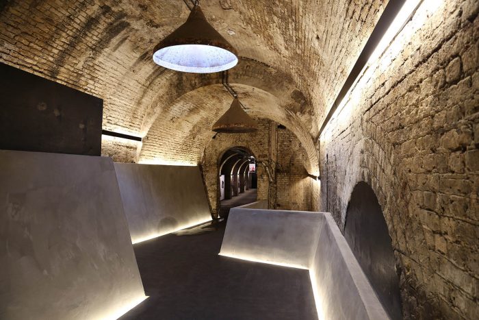 Due to the underground nature of the site it was important to light the space sufficiently for use whilst also elegantly expressing the form of the tunnels. Long linear strips of warm light were used throughout the tunnels, positioned at the intersection of the brick wall and the beginning of the brick arch, to graze the brickwork to create a dramatic cathedral like space.