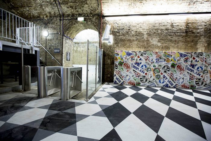 The House of Vans London embodies the Vans brand and the culture surrounding it. Another of the key concepts for the space was to create shrines to everything Vans; a shrine to Vans shoes – the displays of vintage memorabilia; a shrine to skateboarding – the skatepark; a shrine to art – the Vans labs and gallery; a shrine to music – the stage and gig tunnel; a shrine to food – the café and kitchen; a shine to alcohol – the bars, a shrine to ‘rock and roll’ – the green room, and lastly a shrine to the tunnels and their previous use as the Old Vic Theatre – the murals and markings of previous times are proudly displayed within the House of Vans.