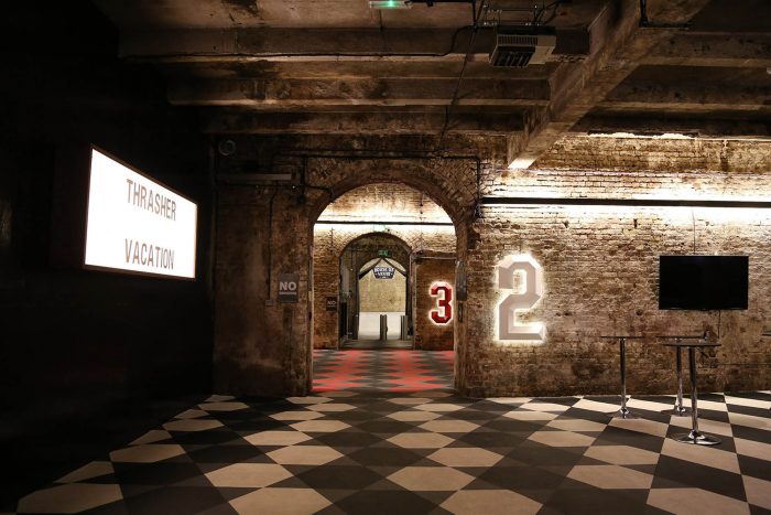 The House of Vans London sits within the 150 year old brick arches of the railway lines heading out of Waterloo station and next to London’s famous graffiti street, Leake Street. The site was previously used by the Old Vic Theatre. The area of the site is approximately 2,500 square metres and contains 5 separate long tunnel spaces. Due to the site being located within the historic arches of the railway lines above, restrictions were clearly set to disallow any form of structural fixing or disturbance to the existing brickwork – the irony was not missed with Vans ‘Off the Wall’ having occupied the site. The collaboration between Pete and Tim provided a thorough understanding Vans and the culture of skateboarding but this also sparked ideas and discussions on how to utilise the brief and the distinctive site to best effect.