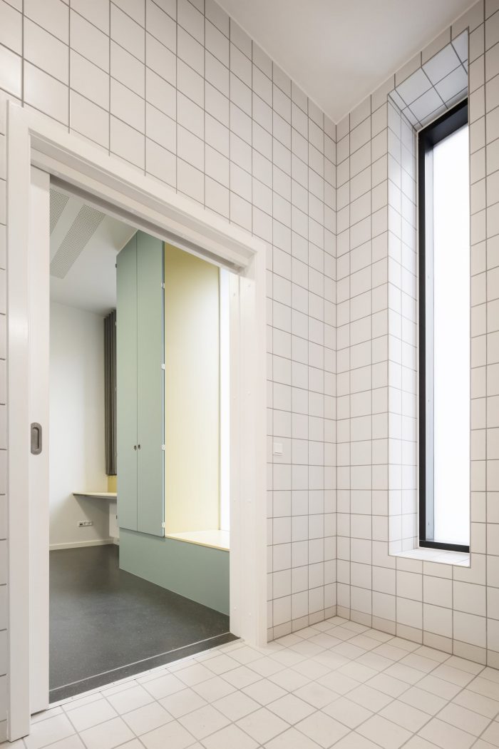 在布局中,外向型的功能,如急诊室接待处和儿童精神病学,在到达时被定位为诱人的单元,而病房则被撤回到建筑内。封闭的一楼将行政管理和谨慎的病人运输联系在一起,形成一个环形结构,表达了空间的划分,并形成了一个清晰的层次结构的外立面。