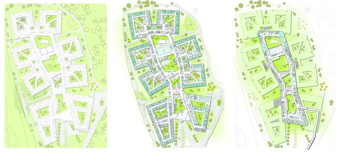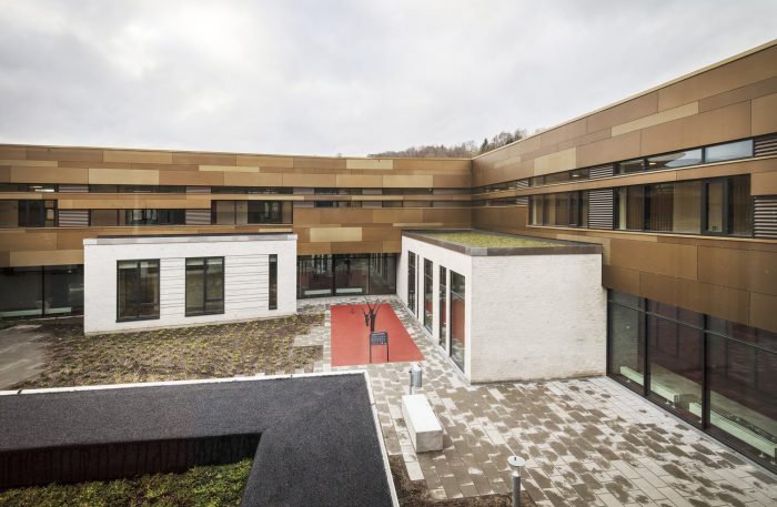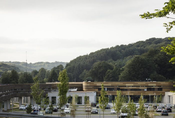 In the layout extroverted functions such as ER reception and children’s psychiatry are located as inviting units upon arrival, while wards are withdrawn within the building. The enclosed First-floor links administration and discreet patient transport in a ring structure which expresses a spatial division and forms a clear hierarchical façade.