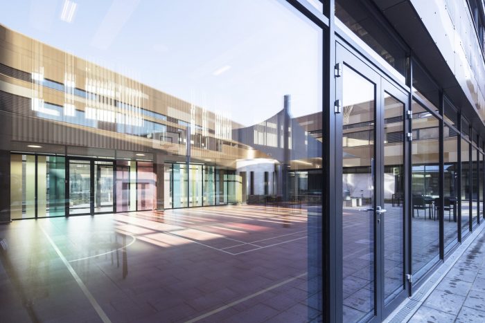 To ensure the full outcome of lights healing effect on psychiatric patients the architects have designed the building with a special focus on both natural and artificial light. Glass panels and interior courtyards bring ample daylight into the building. Withdrawn ceilings and interior glass help light extend even further through the building. Furthermore, 24 hours of colored light therapy is integrated into the wards for calming recovery, sleep support, elimination of depression and preservation of a natural circadian rhythm for staff and patients.