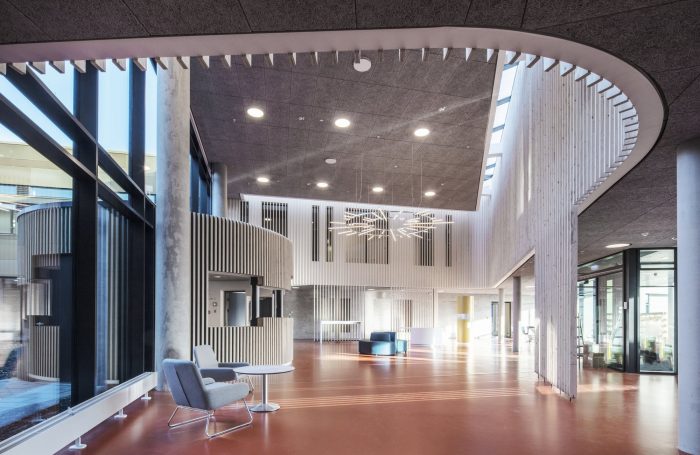 A primary design focus has been on a visionary healthcare design which encourages physical activity and minimalizes forceful intervention. During the design process, the focus was to create the best possible surroundings for patients as well as employees. This is done by ensuring ample light throughout the building, easy access to nature and outdoor spaces, transparent wards with easy overviews, and a well thought layout.