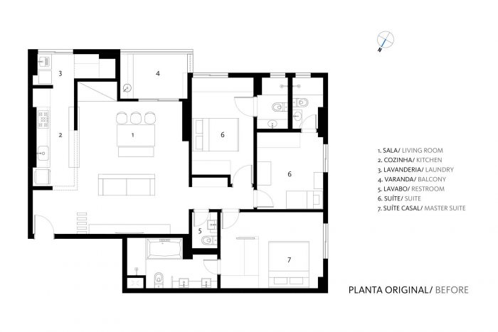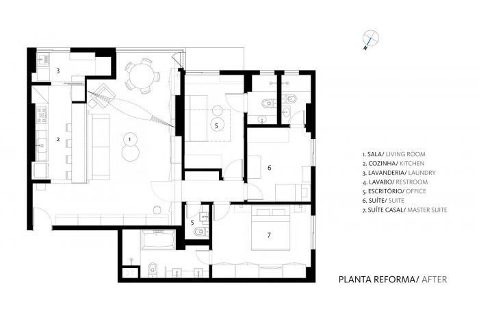 In this apartment, we had the experience of adapting a previous project, which had not fully met the owners' needs. The focus of the renovation was the living room and kitchen space, which also included the integration with the balcony area, which was not often used by the couple.