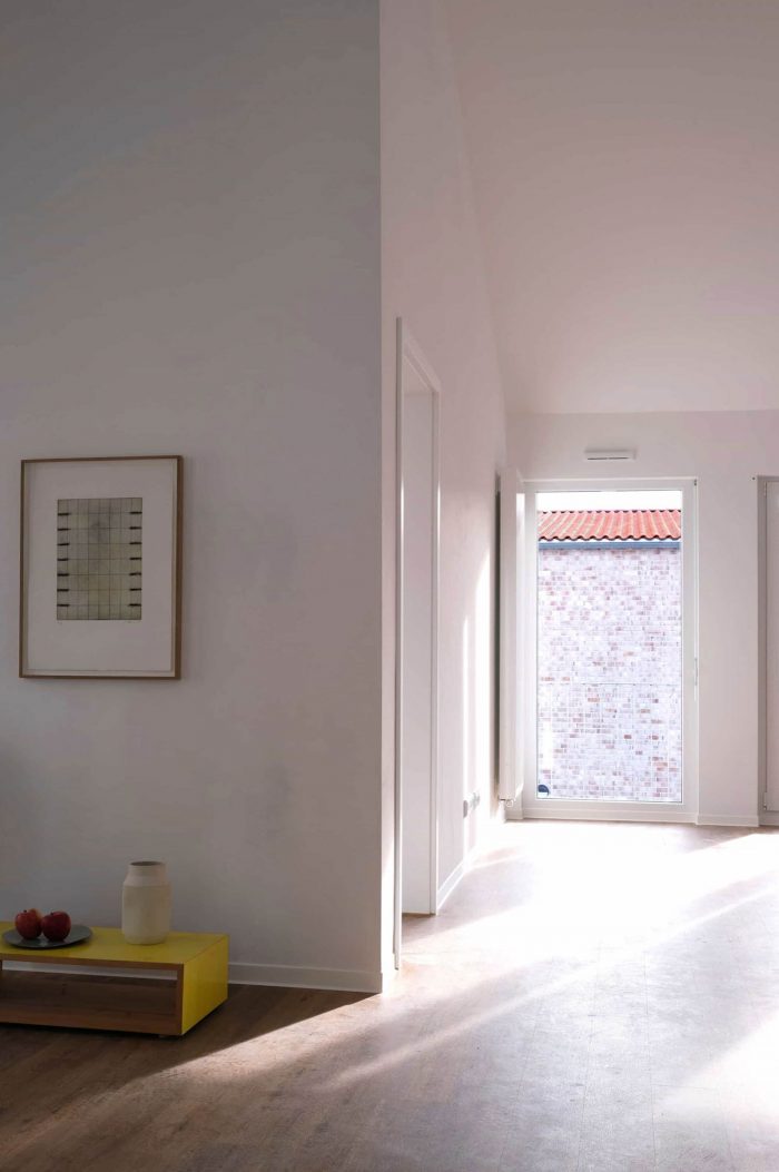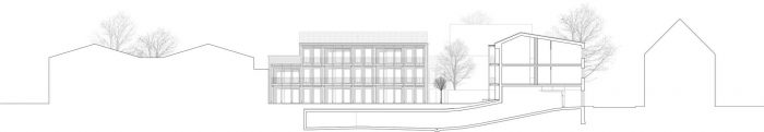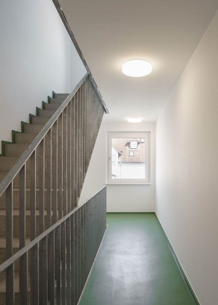 Between Frankfurter Strasse and Taunusstrasse, in the direct vicinity of Verna Park, a small-scale development consisting of seven houses was fitted into the urban fabric. On an inner-city wasteland, the site of the first electricity plant in Rüsselsheim, 50 new flats were built. All types of flats, from small flats for individuals and students to barrier-free flats, family flats as well as shared flats are distributed throughout the complex.