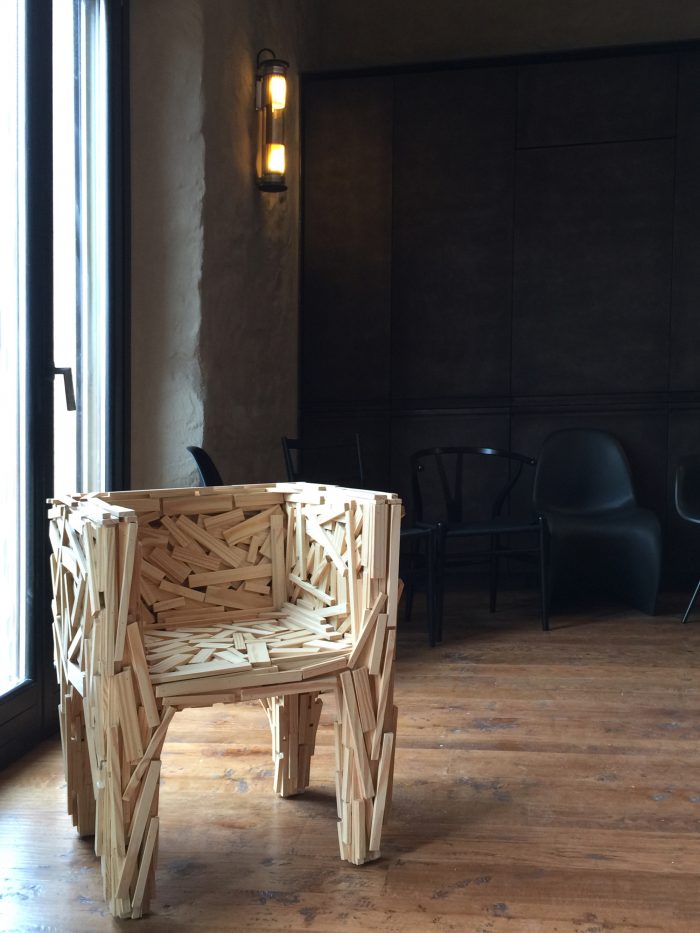 在腾出的空间里,石雕的蛮力促使我们对功能方案进行激进的建筑学翻译。我们没有在砖石结构的空间内建造新的墙壁。相反,我们在新的类似于移植物的装置内将功能程序进行了比较化。因此,原有的墙体与新的元素进行了激烈的对话,新的元素使用了高度真实的材料,能够与石头的诗意的粗糙感相融合。