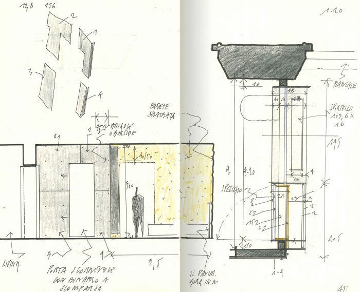 In our design project, to recover a space or a building always means to find in the preexisting structure the prompts for a new beginning. It is not an easy task. You need to look beyond appearances. You need to inspect and remove layers. Sometimes, you need to do that physically. This was the case for the restoration of the Verona Penthouse in the old town center of Verona.