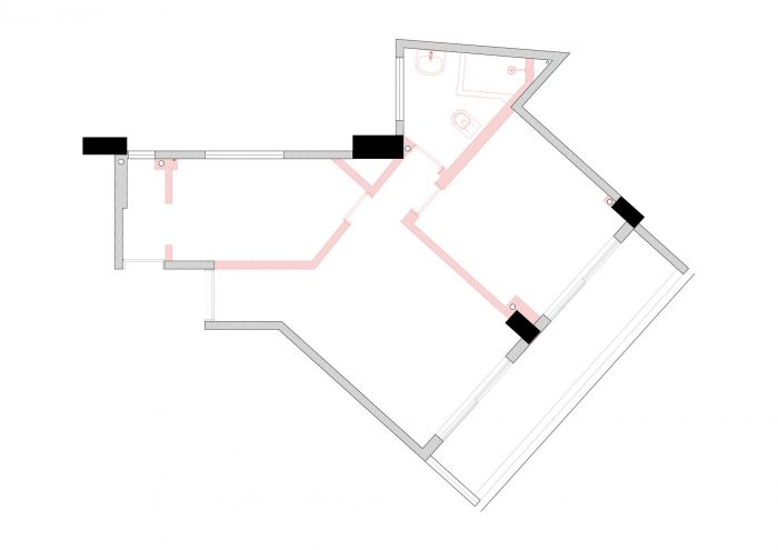 The apartment in question, in the 18th floor of that building, provides through its terraced area a privileged view of the city downtown. Demolishing all the internal walls of the trimmed original plan was, therefore, an action for which the landscape and the natural light, framed by the original wooden frames, could penetrate the space.