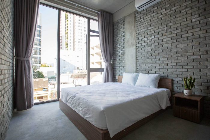 The VietNam Hostel is designed in a minimalist way, which eliminates all complicated elements to reduce the investment cost as low as possible but still ensures the maximum use factor. So, we use a lot of simple and inexpensive materials. And especially, we limit the materials that damage the environment such as paint, gypsum, etc. We prefer to use environmentally friendly solutions such as construction of unbaked bricks, not plastered walls in the house to limit the use of cement. In addition, we also use a lot of trees and sunlight to get the sun and wind for the purpose of making the space airier and friendlier, which reduces the hardness of the materials.