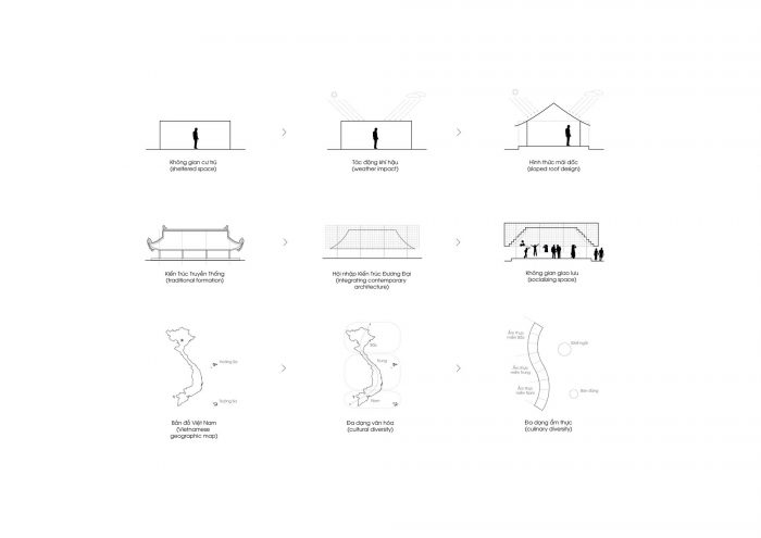 A space which is conceptualized by MIA Design Studio, bases on Vietnamese traditional folk house to replicate its proportions and dimensions, is transparent and interactive with its surrounding environment. “It is open but close, close but open”