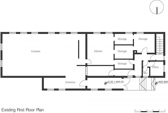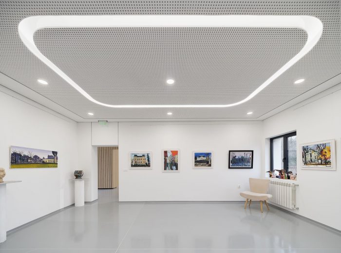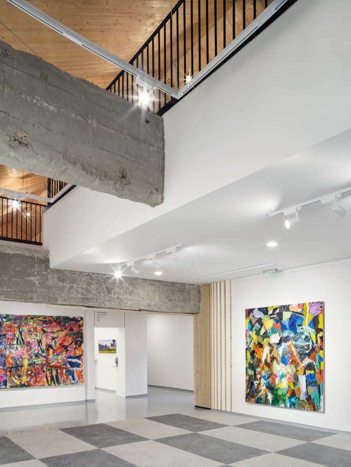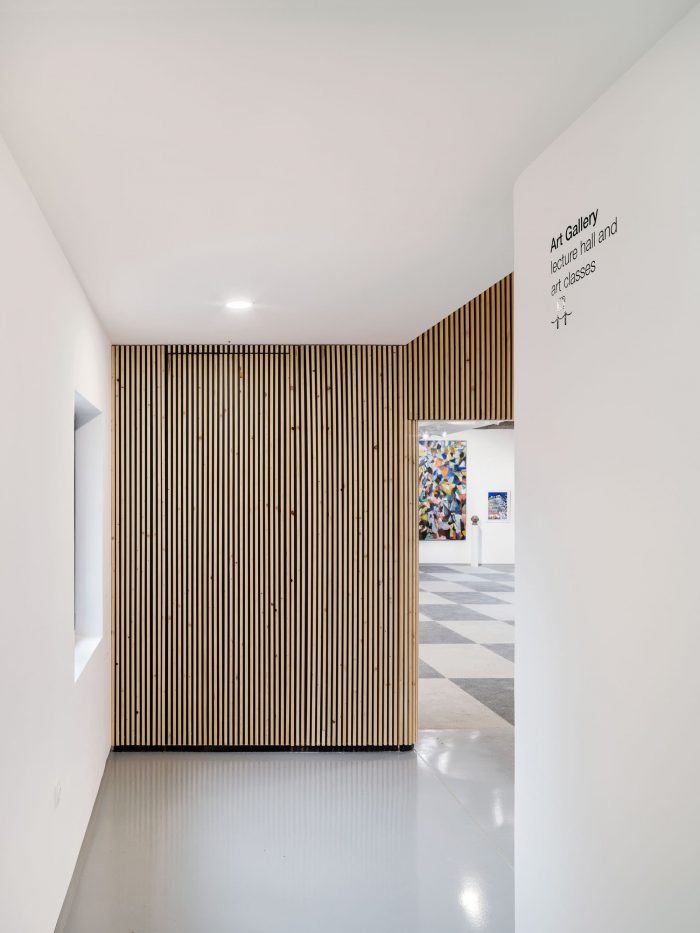 On the Ground floor level all partition walls of the old canteen were demolished to simplify the space and provide more spacious exposition area to the Gallery.