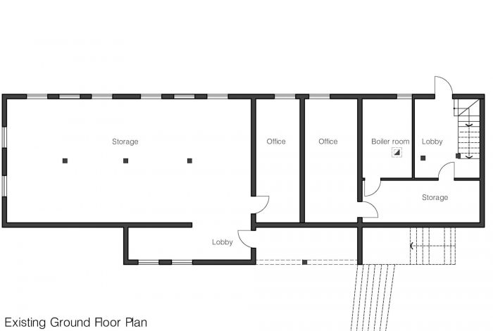 该建筑已被遗弃多年,几乎被毁。至少有30%的承重结构件缺失,这给本已紧张的预算增加了更多的挑战。然而,我们的建议旨在重新利用现有的结构,同时提高外墙的质量和增加画廊的空间。一个积极的可持续再利用的方法将保留现有的地下室到一楼的结构放在设计的最前面。