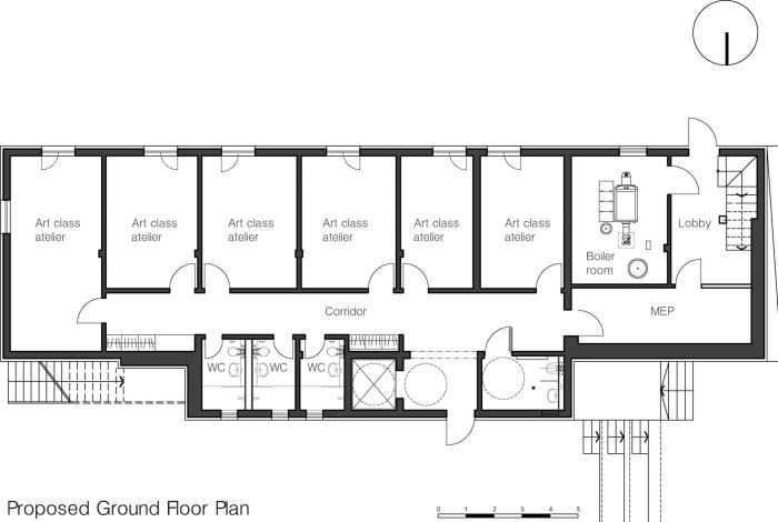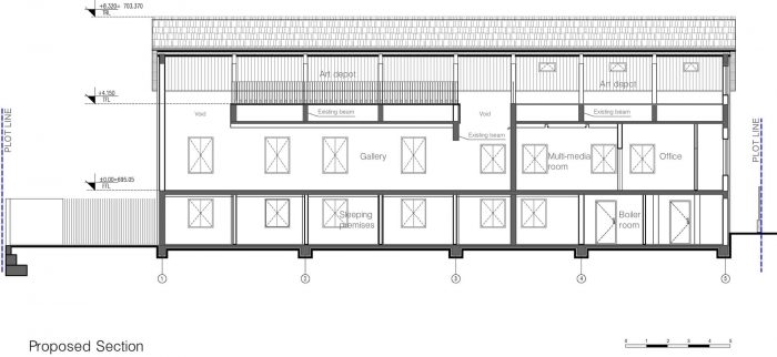 The building has been abandoned for years and almost ruined. At least 30 % of the load bearing structural members were missing which added more challenge to the already tight budget. However our proposal aimed to reuse the existing structure whilst improving the quality of the facades and increasing the gallery space. A proactive approach to sustainable reuse put the retention of the existing basement to first floor structure at the forefront of the design.