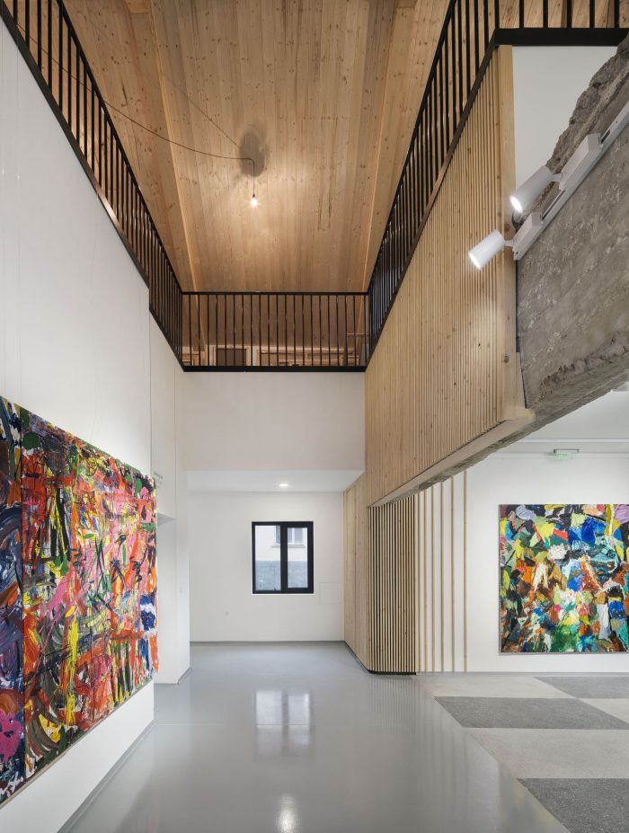 The slab between Ground floor and First floor levels was partially demolished which added more volume to the space and more flexibility in terms of art showcasing.