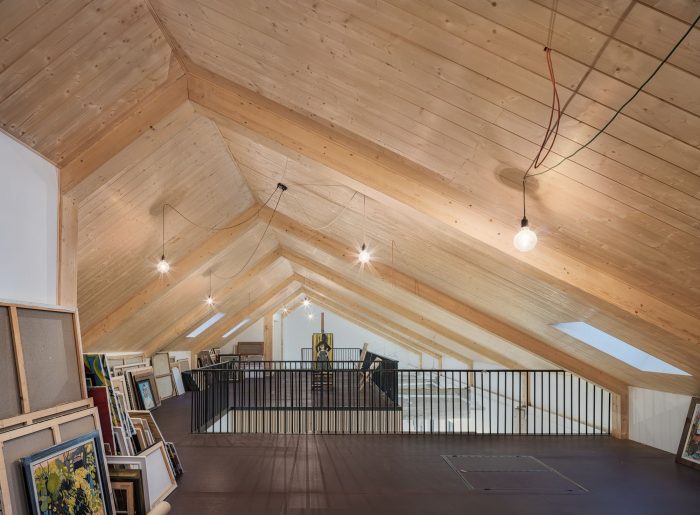 The project introduced an all new top floor extension with Art Depot to accommodate a lifetime Art Collection of the Client. The goal to provide open space layout free of columns was achieved by designing a single span timber frames. Innovative engineering and contemporary structural techniques applying Glulam and epoxy timber column-rafter connections was adopted.