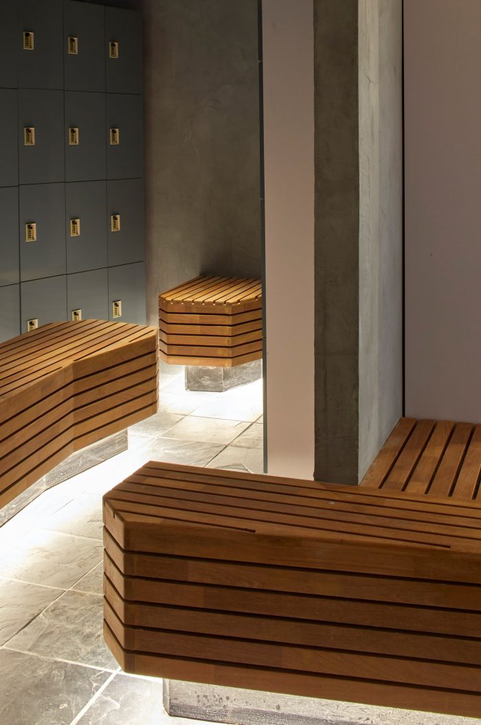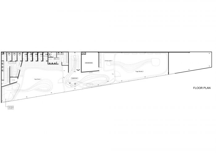 450平方米的空间由一系列自由形式的瑜伽舱组成--两个公共舱和两个私人舱,大堂区和豪华浴室与布局无缝结合。 落地窗的设计贯穿整个正面,使空间充满自然光,同时使舱室保持隐私。