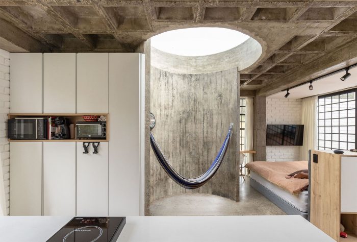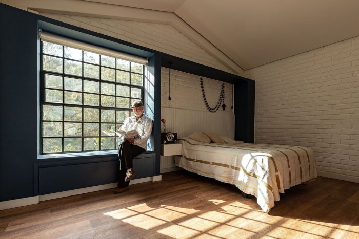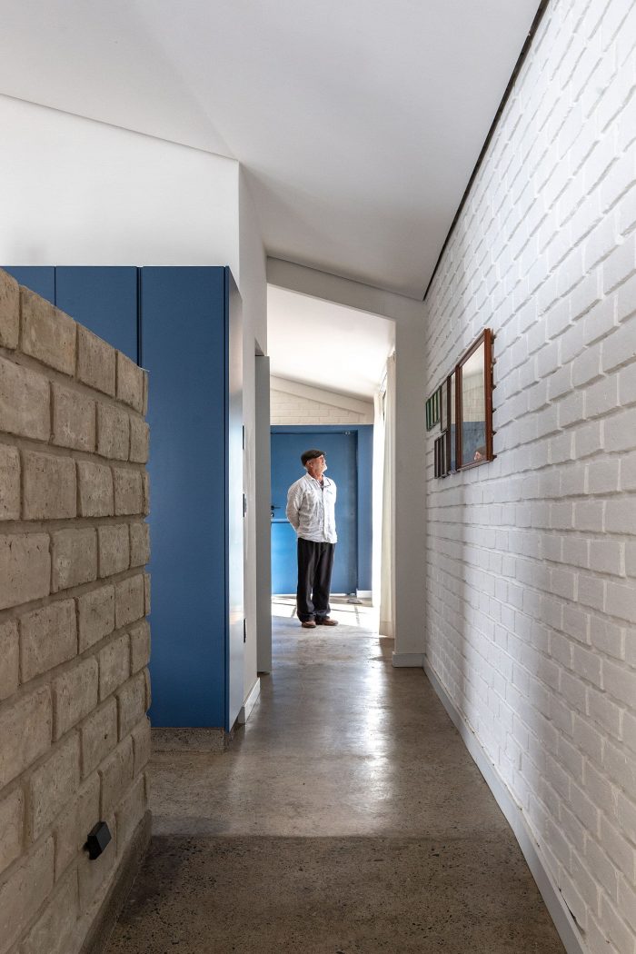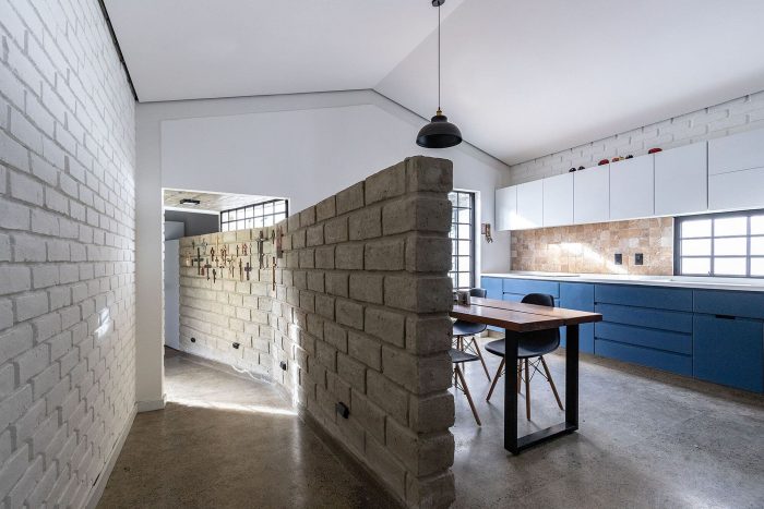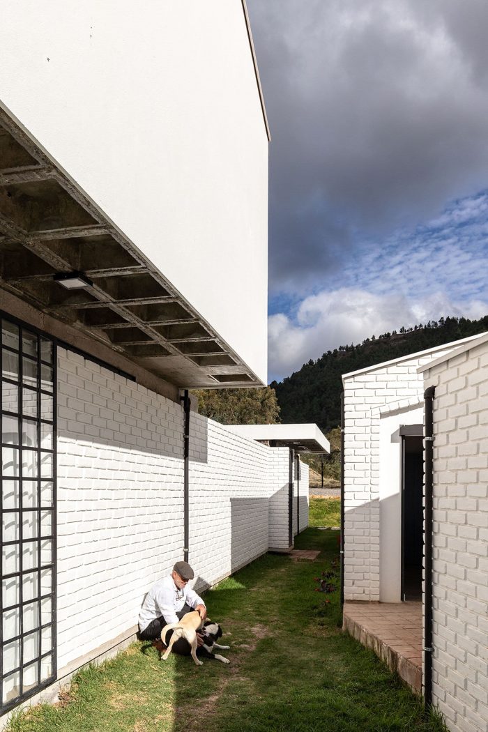 The construction should be impeccable and, together with the program, support progressivity; materials that have characterized our work before being used in the villa, exposed concrete, steel, and handmade ceramic brick without plaster, faithful to our philosophy that promotes the honesty of the material as a formal resource; a concrete basement on which white masonry with imperfect textures is arranged, then topped by heavy concrete slabs or light gabled roofs without eaves, the voids are occupied by modular steel locksmiths and the niches filled by fine carpentry.
