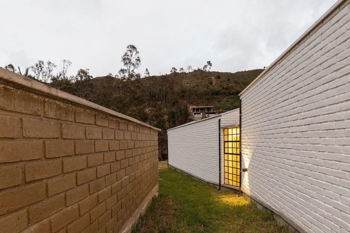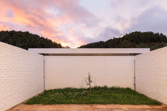 三种类型的天井具有特殊的特点和意图;私人天井,存在于每个单元,三面被砖石或景观包围,仅通过其中一个平面投射到个人空间;公共庭院,通过体量的安排创造,首先是两个平行的平面,然后是切线,投射到景观上,平面上有谨慎的开口,谨慎地将它们固定到私人空间; 还有,最谦虚的,但也是必不可少的,在项目的几何轴上有一个与公共天井相连的空隙,有三个平面与祖父的房子共享空间,还有一个向中心布置的咖啡天井,这是家庭聚会的共同场所。