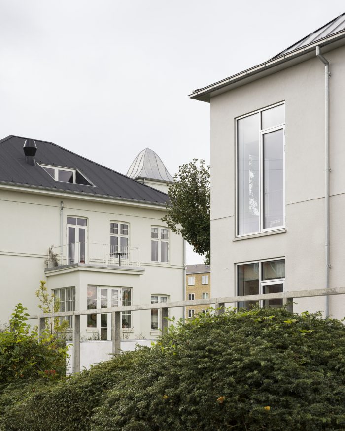At the gateway to central Aarhus, on the threshold between suburban residential housing and urban city blocks, lies Villa Landluft – a stately mansion built in 1897 with references to Italian Renaissance architecture. The name Villa Landluft, Danish for ‘Villa Country Air’, originates from a time when the house was situated far outside of central Aarhus. After more than a hundred years of urban development, this once proud mansion had declined into a dilapidated architectural alien – a last remaining bastion of a bygone era. The project reactivates an outdated building typology, which had become detached from its surroundings both aesthetically, functionally, and demographically.