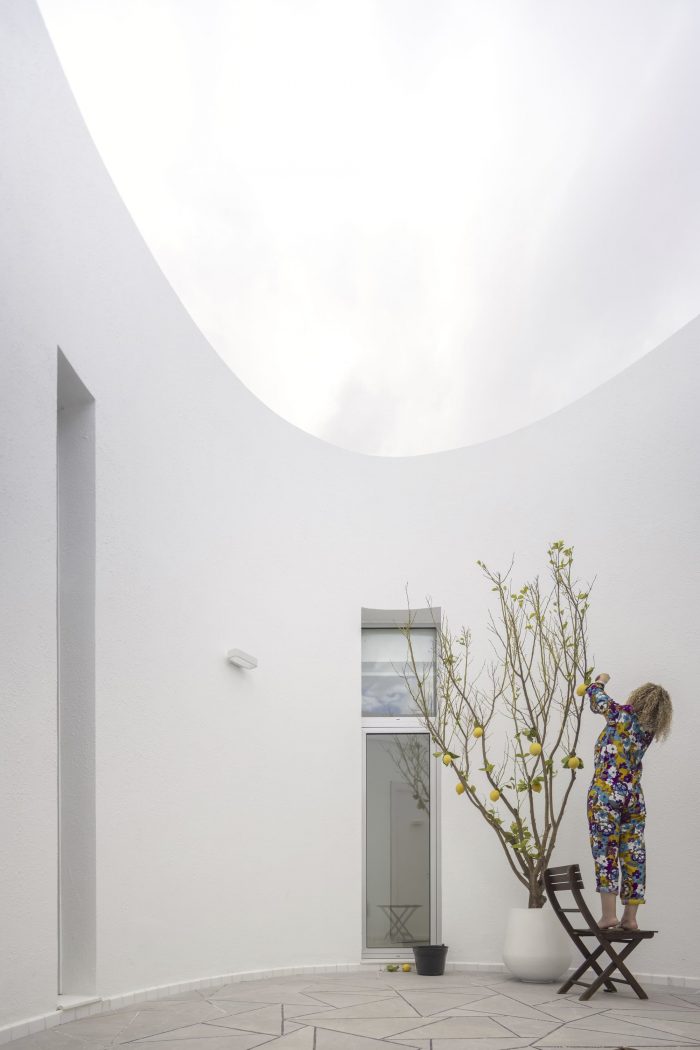 While the interior patio brings life to the spaces, the blind facades guarantee privacy. The walls are sculpted and extended, and this game of vertical planes generates openings that create views and connect with external context without being seen.