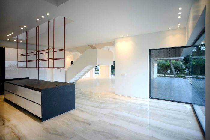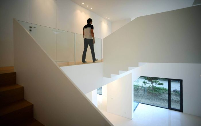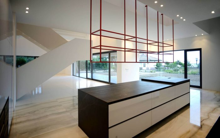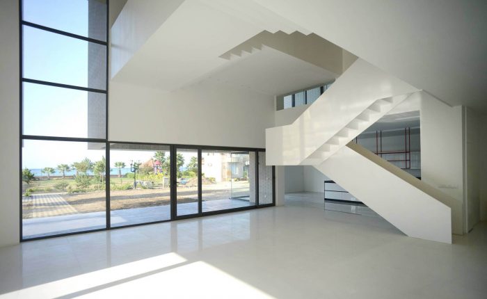 In part of interior design, we tried to highlight stairs as the connective element between levels and terraces. For approaching this idea, we separate the structure of stairs from the main one and facing with it as a monument element. In our main and open space (void).