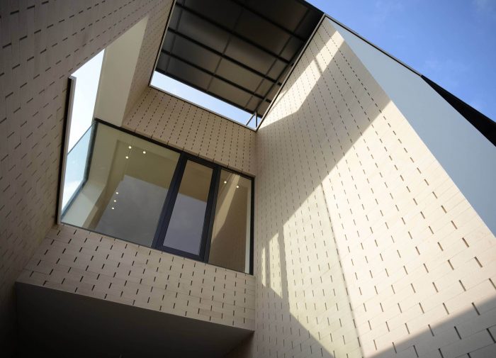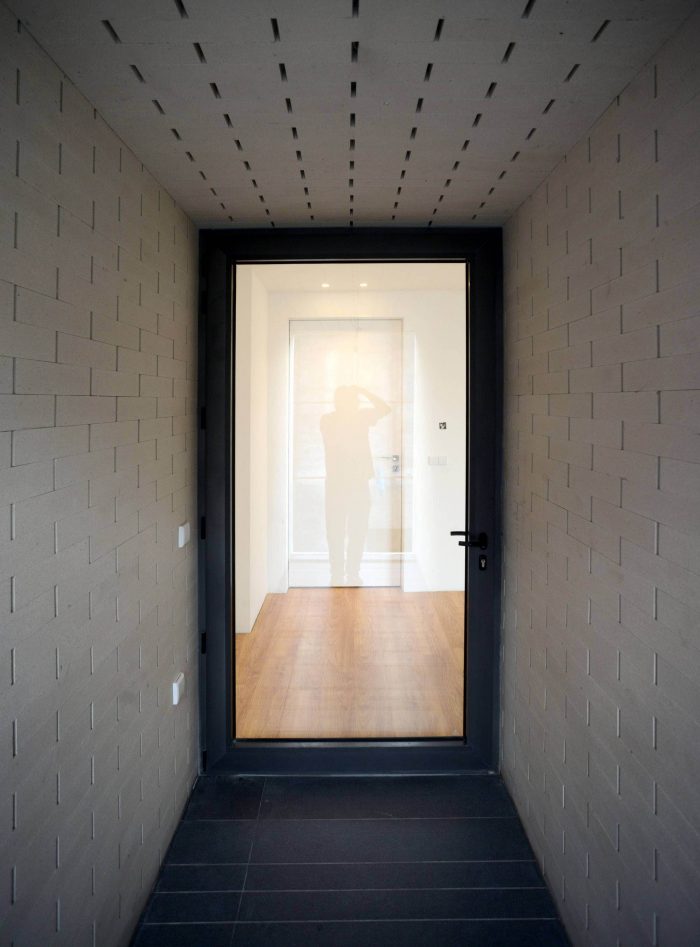 我们在这个项目中遵循一些目标。其中之一是通过使用砖头材料在负空间的表面和其他外墙的表面之间形成对比。另一个是通过L型窗户将室内的视线引向绿墙,所有这些项目使这些单元与周围环境有了更多的联系。