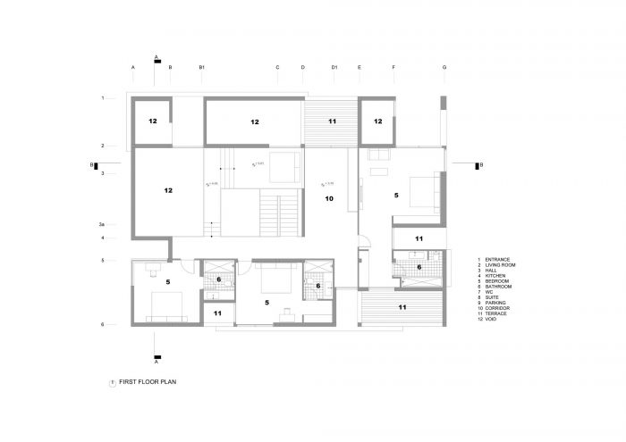 下一阶段是设计12号别墅,根据前面提到的项目,我们开始创造不同的负面空间。许多基本因素导致我们提取负面空间,并在多次修改后达到了最终的形式。这些因素包括:主要和次要露台的位置,对周围环境和附近地区的看法和视角,以及布置所需空间的方式。