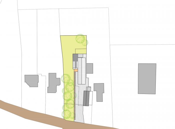从公共街道上看,你几乎看不到这所房子。就规模而言,房子与纪念碑很相称。这两座房子形成了一个对比。谷仓式房屋在细节和材料上都非常简朴,但纪念碑在传统上是用古典装饰品设计的。房屋的装置很微妙。太阳能电池板被放置在屋顶上,这样它们就不会形成一个令人不安的元素,太阳能屏幕也被放置在外墙后面。外墙被包起来了。车库门也被纳入了前立面。通过保持正面封闭,住宅功能位于侧面和后面,可以为大窗户留出空间,既不失去隐私,又能看到广阔的风景,非常壮观。