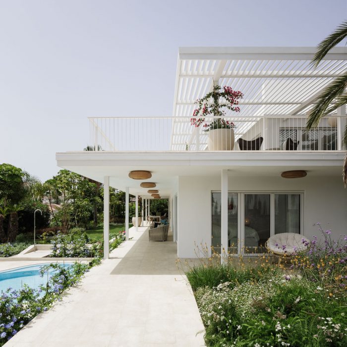 别墅的设计灵感来自于客户的精神和将她的旧度假屋改造成新的和现代的愿望。在与建筑师讨论了一段时间后,她的想法变得很清楚,一个白色的现代别墅,带有嵌入热带花园的阳台。这座房子最终将成为她的永久住所,它应该反映出对她已故丈夫的回忆和过去家庭度假的快乐。