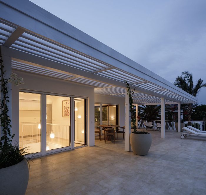 The design of the villa was inspired by the client’s spirit and a desire to transform her old holiday house into something new and modern. After a period of discussion with the architect it became clear what she had in mind, a white, modern villa with veranda embedded into a tropical garden. The house, that will eventually become her permanent residence, should reflect memories of her late husband and the joy of past family holidays.