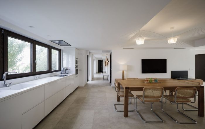 Although the house has been totally transformed, traces of the original have been left as reminders of the past. The new house, a large, modern and airy villa embraces the future.
