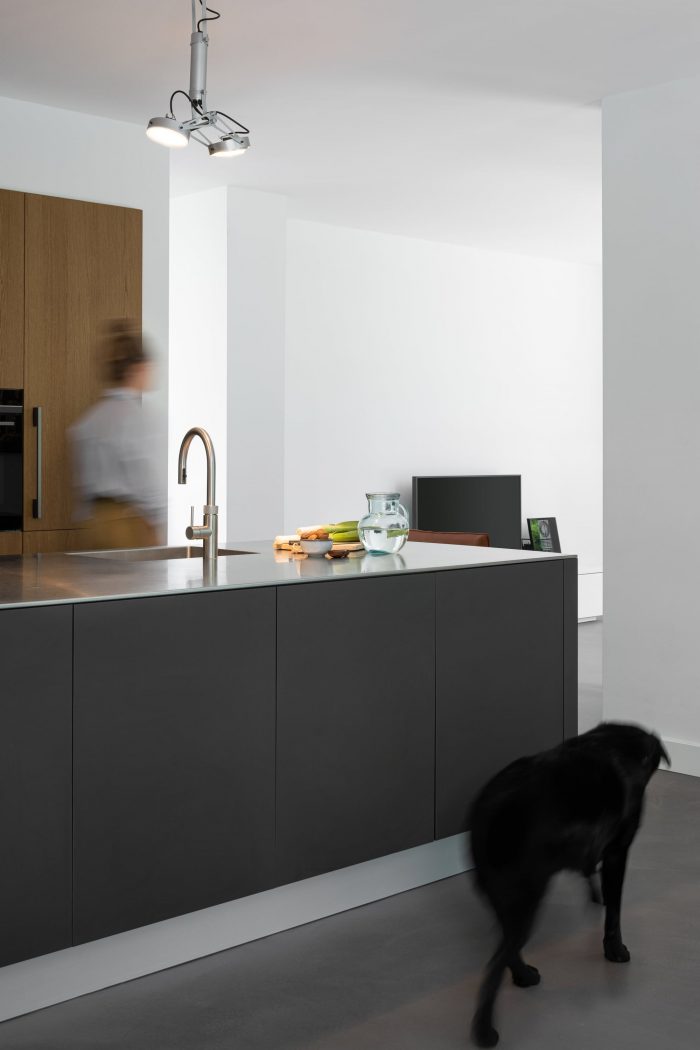 房屋的颜色和材料调色板一直保持有限,以确保房屋不会掩盖其周围的绿色环境。外墙由Van de Moortel公司提供的珊瑚红色砖石覆盖,准确地说,是3016系列。砖的自然细微差别创造了一个活泼和现代的外观。凹陷的水平接缝突出了房屋简洁的水平线条,细长的黑灰色铝制窗框和钢制挡板为现代外观做出了贡献。