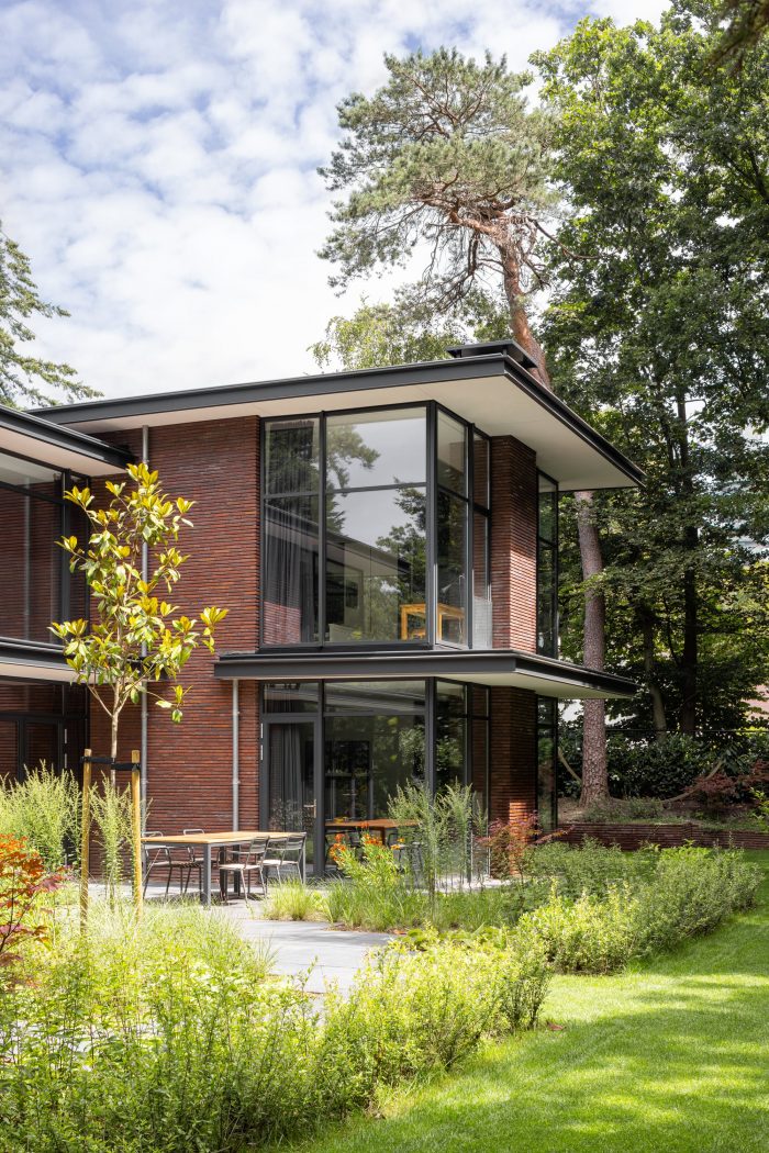 In 2017, Engel Architecten was asked to design a house on a plot in the villa district Trompenberg in Hilversum. The plot is located in a wooded area on the outskirts of the village. The allowed building area is located near the middle of the lot and is surrounded by trees, which guarantee privacy for the residents. The house was built in 2 phases, the first of which was completed in 2019. The second phase was finished in 2021. In the meantime, the garden, designed by Anet Scholma, was laid out.