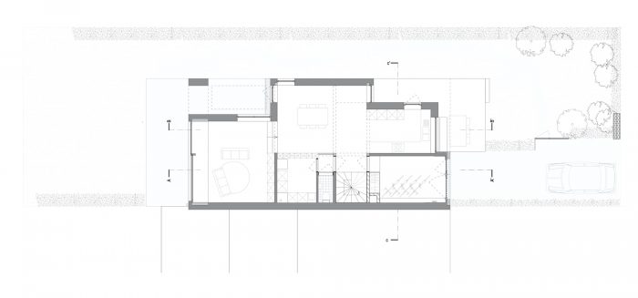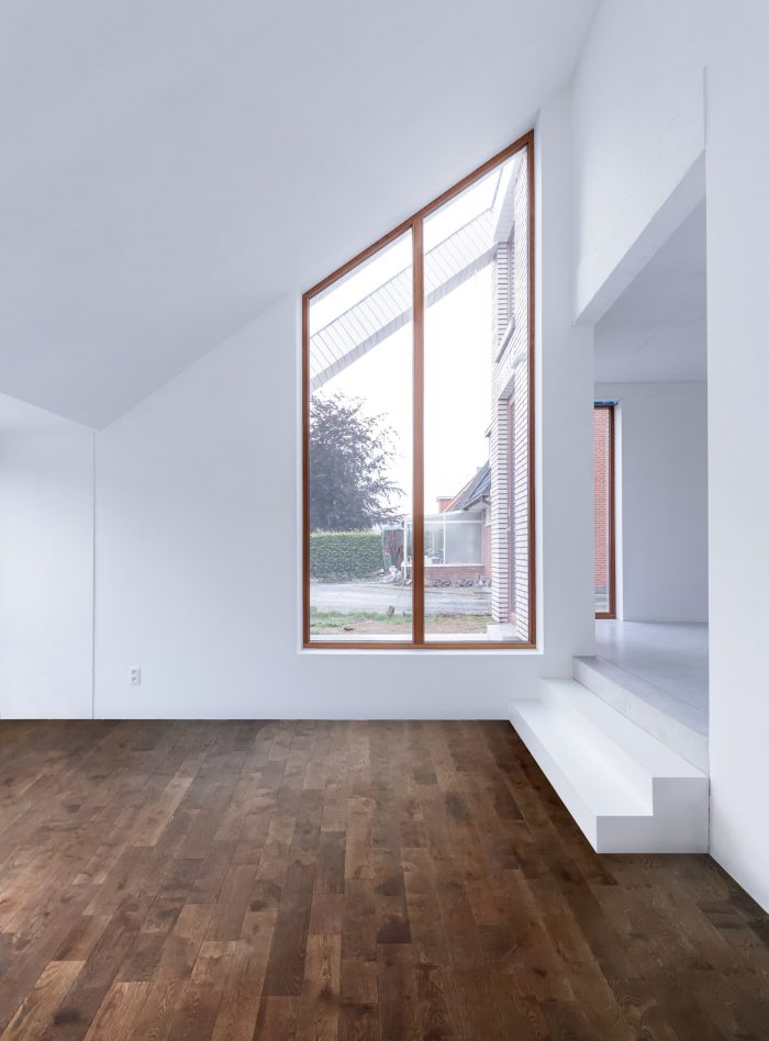 烟囱的形状被用来提供一个天窗。由于朝向的关系,生活空间被设计成阳光照射的地方。在正面,厨房被放置在一个 "门廊 “上。