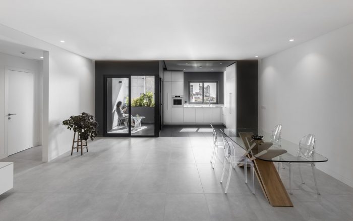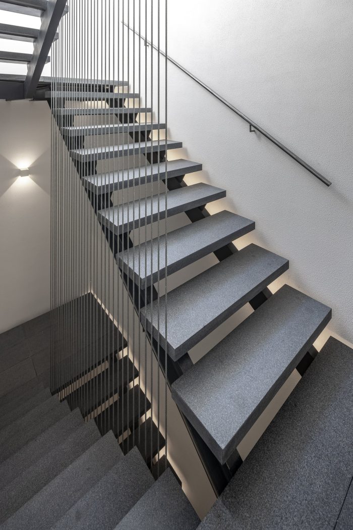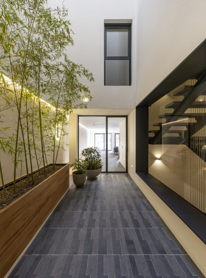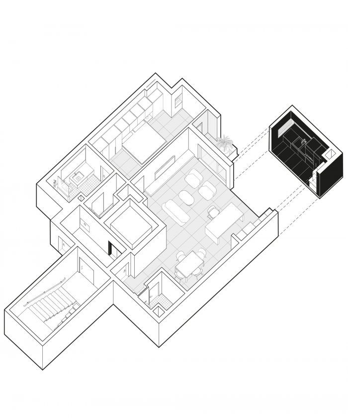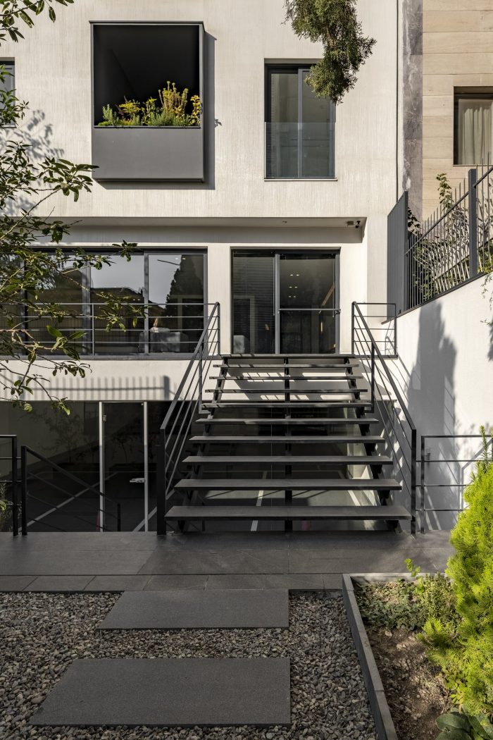 这里的目的是重新定义建筑的领土,并吸收一个单家独户的房子,在没有僵硬边界的干扰下扩展到周围环境中。建筑的内部布局显示了与外墙的深层结构和体积的联系;这种语汇贯穿整个项目。并列的空隙体量通过变换的视角和视野提供了游戏性,使室内和室外的边界得以同时体验。内部和外部之间的捉迷藏是通过实体和空隙的相互作用来进行的,挑战了暴露和隐私的概念。每层楼有两个单元;使噪音和隐私成为长方形楼梯间定位的驱动力,楼梯间作为一个缓冲区,防止单元之间的声音和直接的视觉接触。