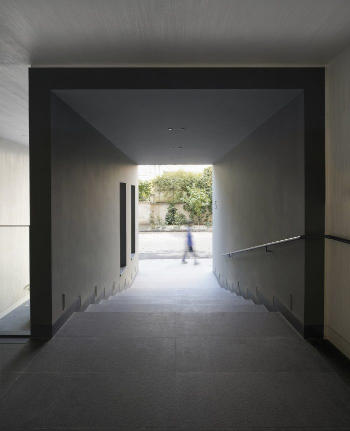 VOID+是Maryam Pousti的第一个住宅方案。它试图为传统的居住模式和密集的城市生活提供一个替代方案,这导致了封闭的建筑围护结构,缺乏与环境的对话。VOID+位于一个极其狭窄的场地上,由5层的10个单元组成。该项目的突出特点是在北侧立面上战略性地雕刻了一个亲密的空隙,试图让建筑与周边环境接触。空隙的体量在建筑的天际线和它的脚之间创造了一个垂直流。主入口被定义为一个特殊的时刻,即空隙的垂直度变成了一个沿建筑长度延伸20米的水平平面。这个水平平台连接了街道层面和后花园,允许在附近进行公共活动。