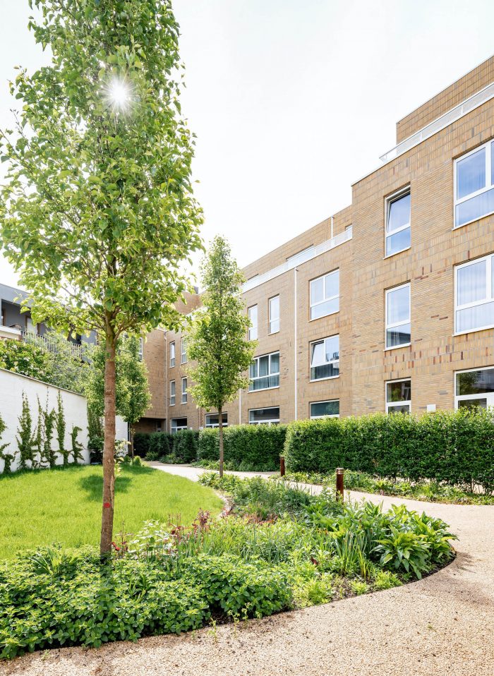 The roofs of the various terraced housing typologies form a landscape of lush roof gardens and roof terraces, including one distinct communal roof terrace for all residents.