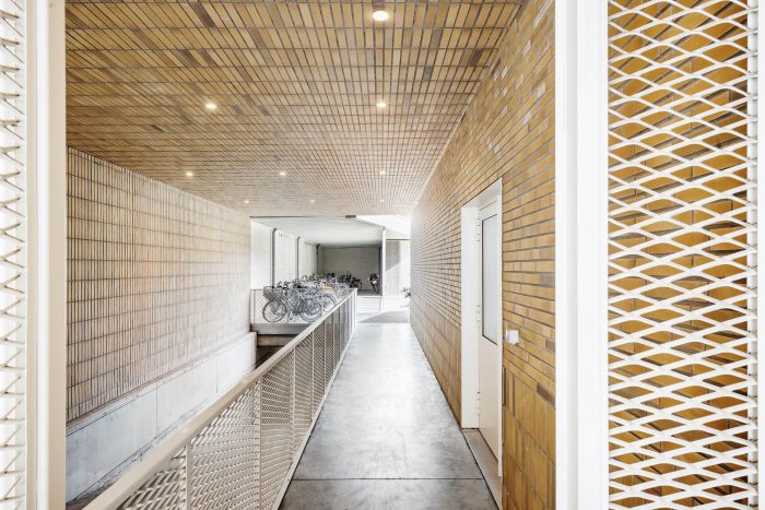 In addition to the communal garden and the neighborhood shed at ground level, we also designed an easily accessible underground car park for all the residents. In the basement, there is space for individual storage rooms of the residents and a communal laundry room with washing machines and dryers.