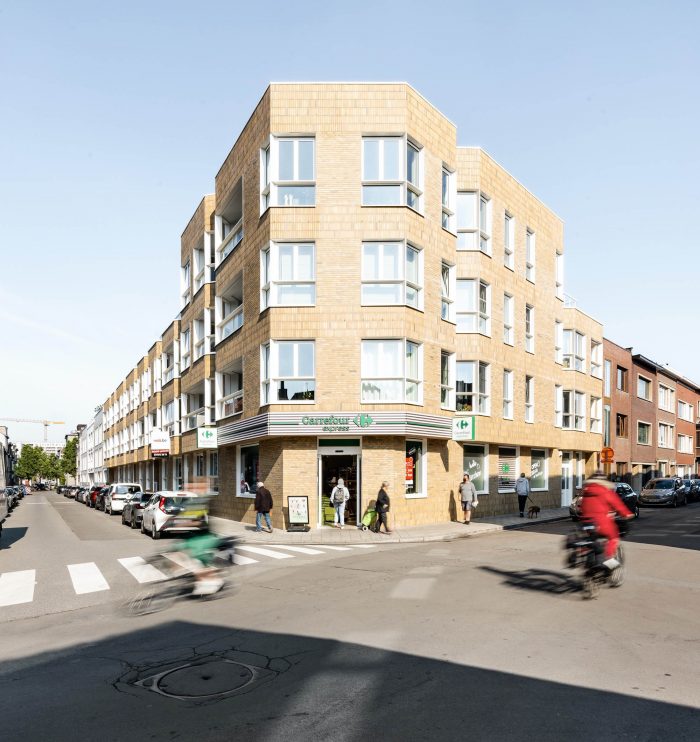 W.PLACE is located on the corner of the De Wittestraat and the Kemmelbergstraat in Berchem. For this purpose, the former police station on this site was completely demolished. The project consists of 25 residential units, two commercial units around a communal garden with a neighborhood shed, a roof terrace, and an underground car park.