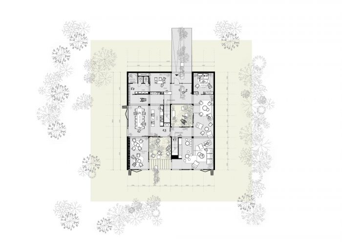 不同的空间将使不同的个人、不同的阶段和不同的团体配置都能得到舒适。有一个温暖的壁炉,将人们聚集在一起,带来温暖和舒适。灵活的座位安排,从单人到8人一组的舒适聚会,都可以很容易地在这个空间里找到。餐厅是房子的心脏。这里光线最充足,可以为内向者和外向者提供一个聚会的空间,有阳光,有阴凉,可以看到外面的风景,也可以看到舒适的院子。