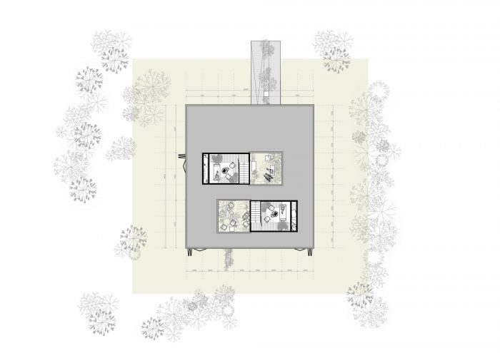 Direct access to the courtyard will make this a comfortable space to retire for a moment alone or gather in the open air. The courtyard, is a serene and calm slice of nature, with lavish green, and protection from wind. The play of light that this skylight will provide will transform the space throughout the day and the seasons, from warming colors to bright patches the wood will reflect the light and warm up the space. Therapy under the sky all on a journey under the same sun, to be comforted and hugged by a ray of light. After all, a place to come, to relax, to be safe, a warm nest.