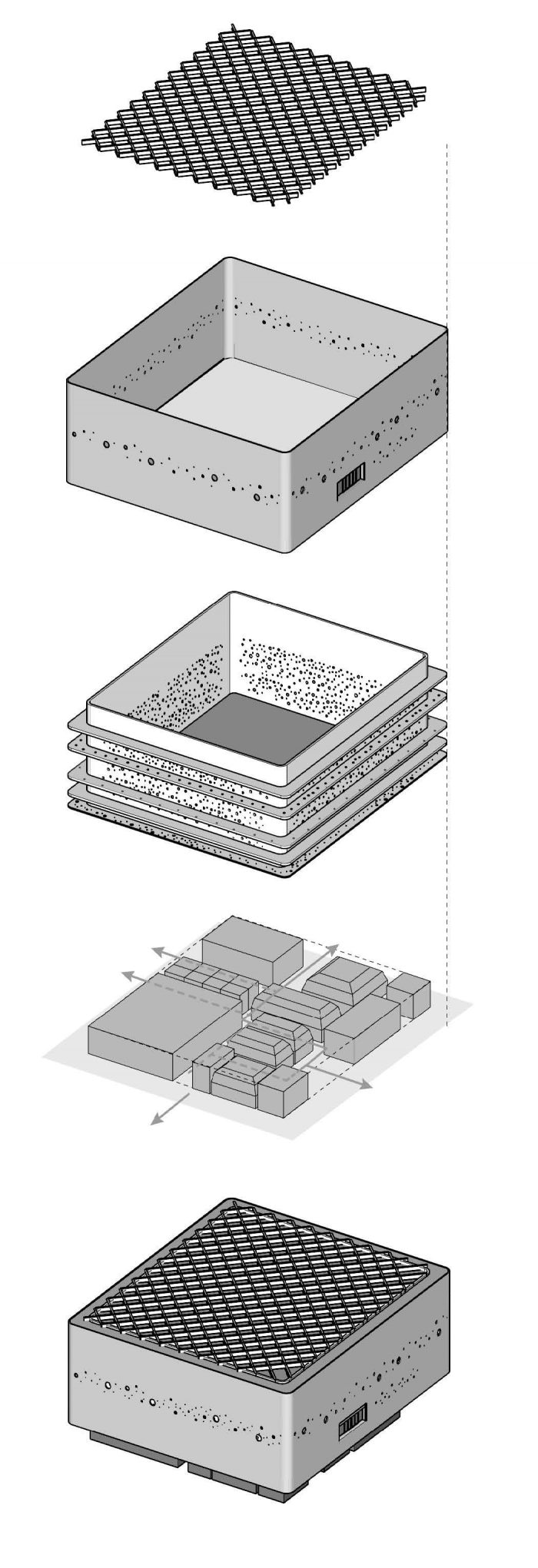 由于在场馆墙壁上的战略位置钻了大大小小的孔,穿透场馆核心的自然日光是苍白而昏暗的,类似于午夜的太阳。这种取向使人们不再需要遮光窗帘。该设施的内部和外部都是用清水混凝土完成的。装饰物被保持在最低限度,以明确建筑的构成。结构布局类似于一个寺庙;空间配置的意图是创造一个用户可以学习事物 "本质 "的地方。